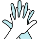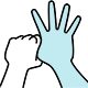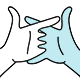 In Bubble Beats, players position the hands for each scrub step by tracing a symbol on the touchscreen interface. This screenshot shows the right hand moving closer to the left, and beginning to curl the fingers around the left thumb.